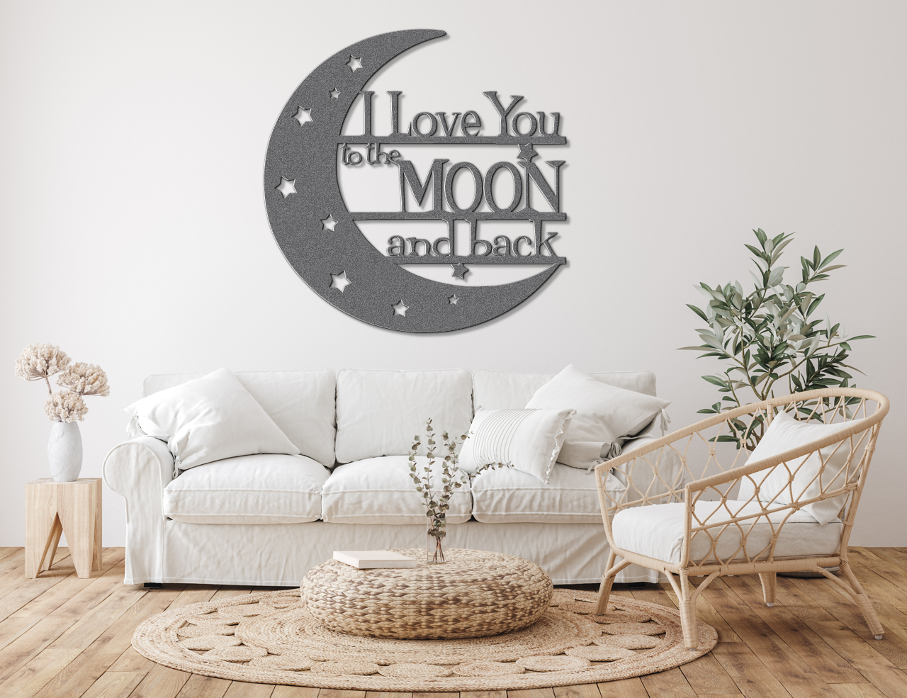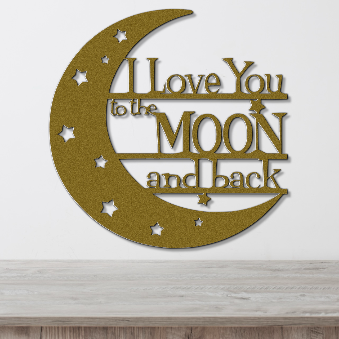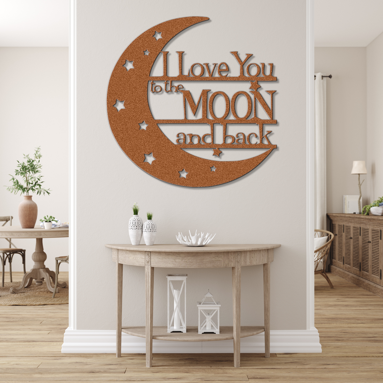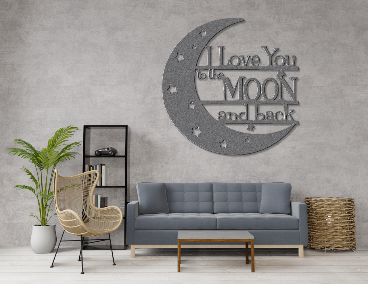 This charming metal sign features a beautifully crafted half-moon design, complete with delicate star-shaped cutouts. The moon is paired with the heartfelt phrase, “I love you to the moon and back,” elegantly inscribed across the sign. Perfect for adding warmth and sentiment to any space, this sign serves as a constant reminder of love and affection.